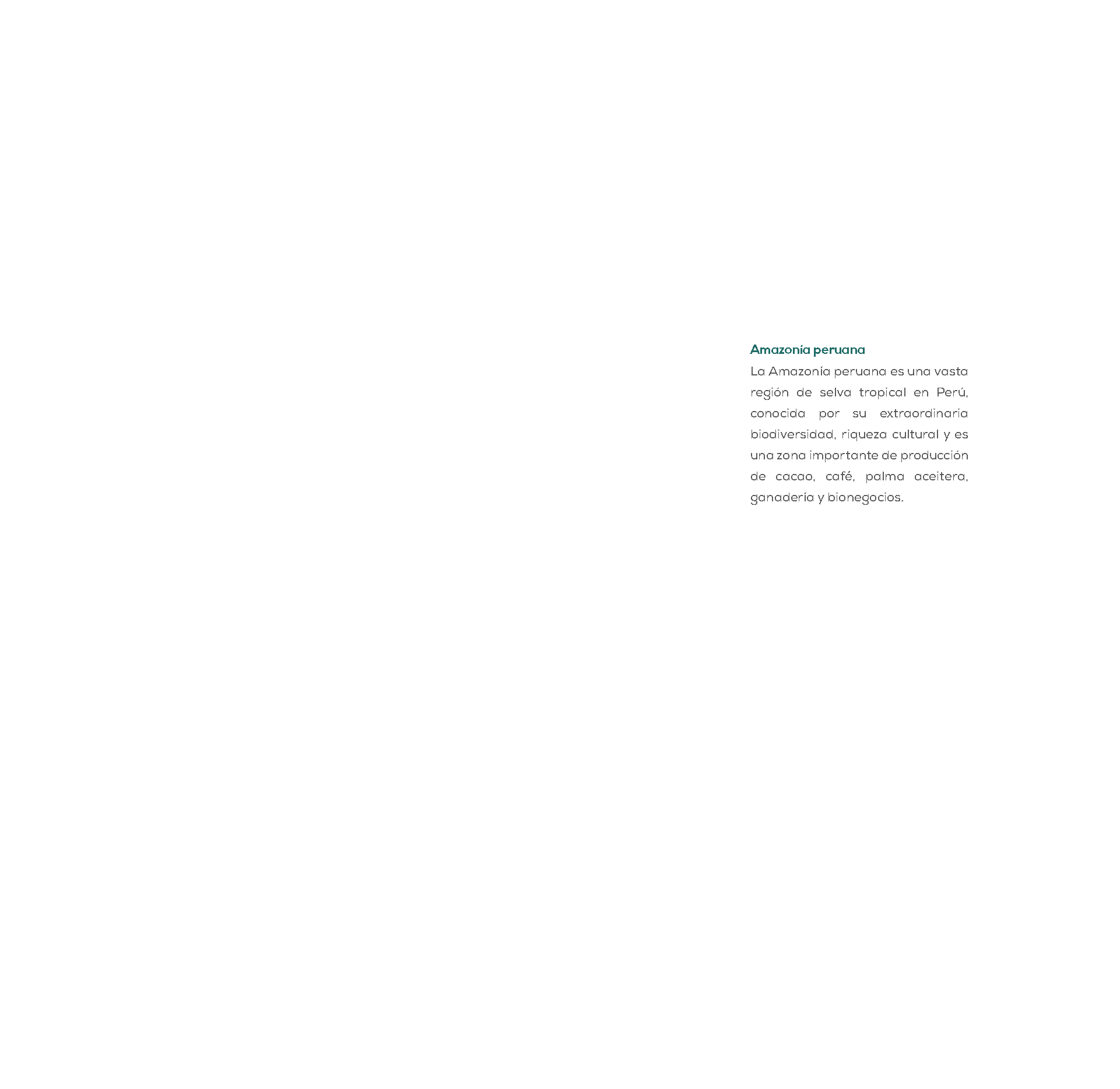 La Amazonía peruana es una vasta región de selva tropical en Perú, conocida por su extraordinaria biodiversidad, riqueza cultural y es una zona importante de producción de cacao, café, palma aceitera, ganadería y bionegocios.